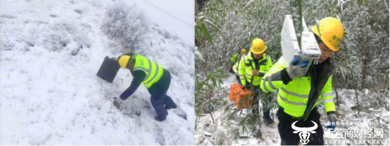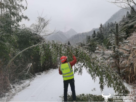 (在恩施,移动抢修人员冒着凛冽寒风赶赴现场开展应急抢修工作,抢修人员采取肩扛手提的方式携带设备赶往故障基站)