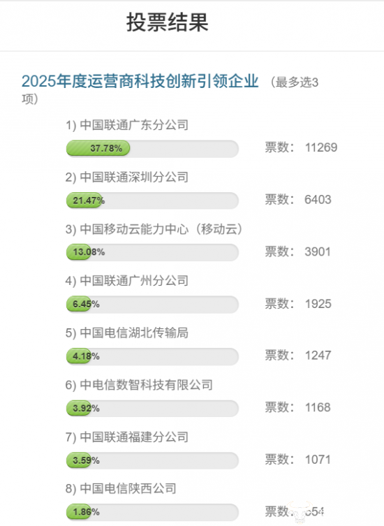 目前,由运营商财经网主办的2026中国财经TMT领秀榜评选活动投票已进入关键阶段,接下来公布“2025年度运营商科技创新引领企业”奖项投票暂为靠前的企业名单。