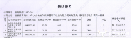 中移系统集成公司参与了不少数字化项目,还曾在2025年4月以1802.7万元的中标金额拿下过河南新乡某地的教育数字化转型项目,没想到会因为技术得分太低,直接成为无效标,难道是没好好准备投标材料?