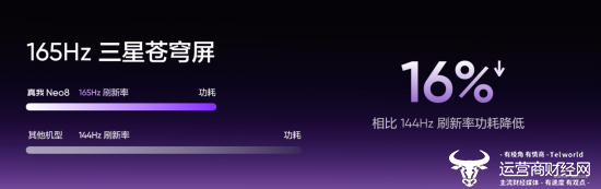 极致性能需要顶级屏幕来呈现。真我Neo8携手三星显示全球首发165Hz三星苍穹屏,采用M14旗舰发光材料,发光能效提升26%,165Hz功耗相比行业144Hz降低16%。