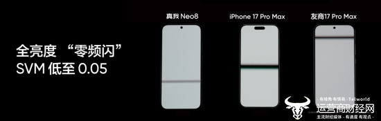 在亮度方面,真我Neo8实现手动最高1000nit、全局峰值1800nit、局部峰值6500nit以及阳光显示3800nit的全场景顶级通透体验,阳光显示状态下103% P3超广色域让色彩还原更准确,高亮不再惨白。新发光材料更带来了更耐久的发光寿命,真我Neo8采用更严苛的T95亮度衰减指标,实测成绩长达1500小时,屏幕寿命较行业提升50%。护眼方面支持全新绿野护眼方案,支持全亮度DC调光,SVM低至0.05,并获得了莱茵无频闪认证,硬件级低蓝光与AI护眼功能,全场景守护用眼健康,让久玩更护眼。