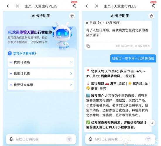 免费领了一张天翼出行PLUS会员月卡,订酒店和机场贵宾厅能享85折,空铁餐券也有95折优惠,比在其他平台订的价格便宜了几十块。更贴心的是AI出行助手,航班动态、登机口变更都会实时推送提醒,不用担心错过行程,带老人小孩出行也更安心。