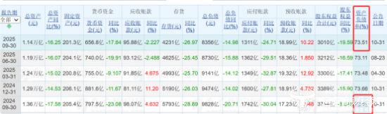 值得关注的是,根据万科发布的2025年三季度报告,公司营业总收入为1613.88亿元,较去年同报告期营业总收入减少585.06亿元,同比较去年同期下降26.61%;归母净利润为-280.16亿元,较去年同报告期归母净利润减少100.73亿元。公司资产负债率为73.51%,但仍然处于较高水平。