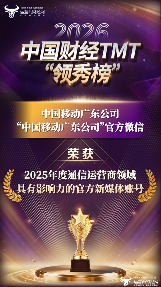 经过激烈的追逐,广东移动旗下“中国移动广东公司”官方微信凭借成熟的运营传播能力,荣获了“2025年度通信运营商领域具有影响力的官方新媒体账号”奖项。