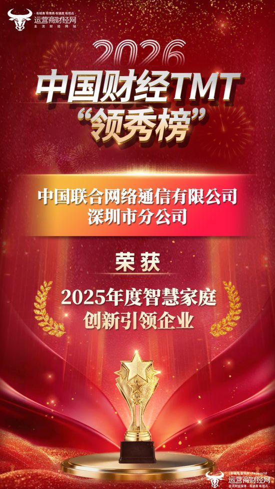 盛典期间,运营商财经网正式公布了备受关注的各大奖项获奖名单,其中,深圳联通表现突出,荣获“2025年度智慧家庭创新引领企业”!