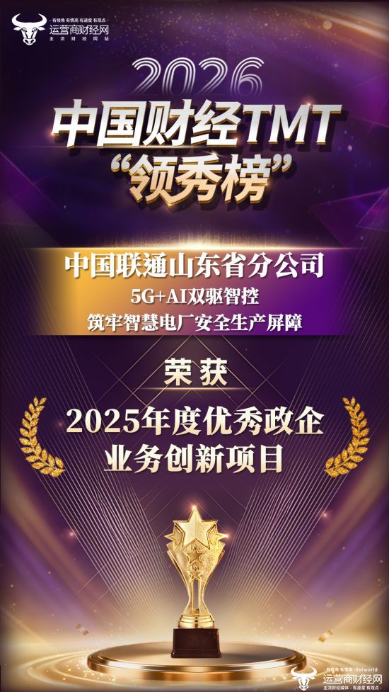 在盛典现场,运营商财经网正式公布了获奖企业的名单。其中,中国联通山东省分公司的5G+AI双驱智控,筑牢智慧电厂安全生产屏障凭借出色的表现,斩获了“2025年度优秀政企业务创新项目”奖项。