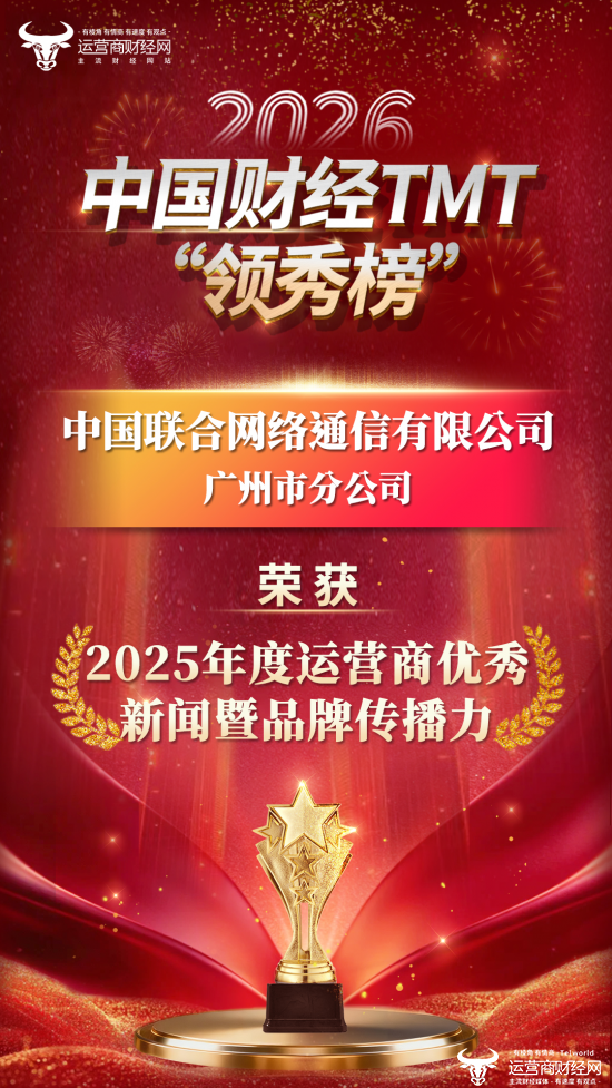 其中,中国联合网络通信有限公司广州市分公司斩获“2025年度运营商优秀新闻暨品牌传播力”这一奖项。