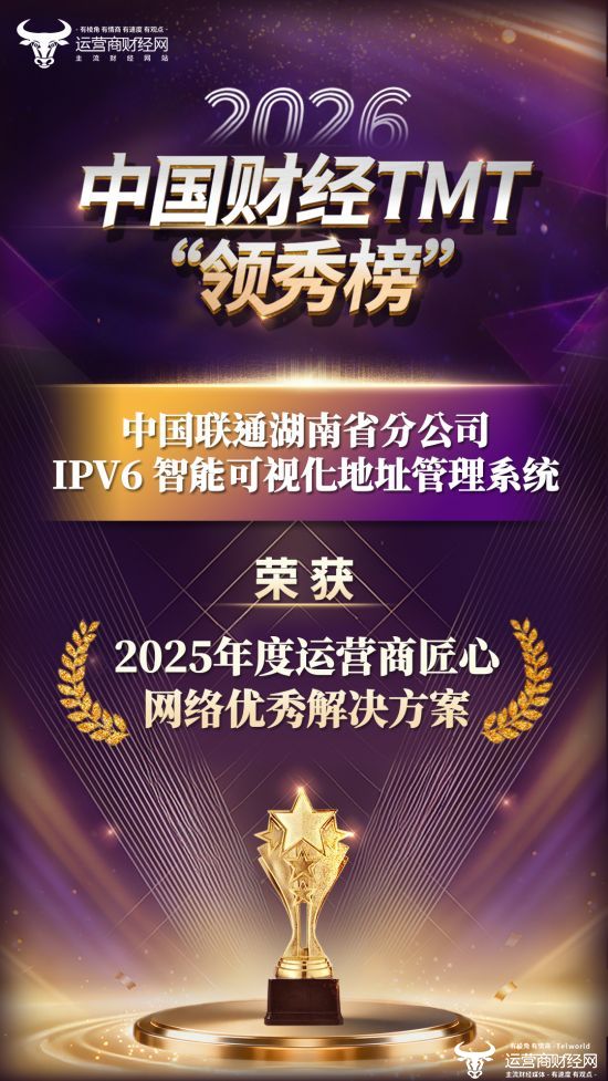 盛典期间,运营商财经网宣布,湖南联通项目——IPv6 智能可视化地址管理系统荣获“2025年度运营商匠心网络优秀解决方案”,恭喜!