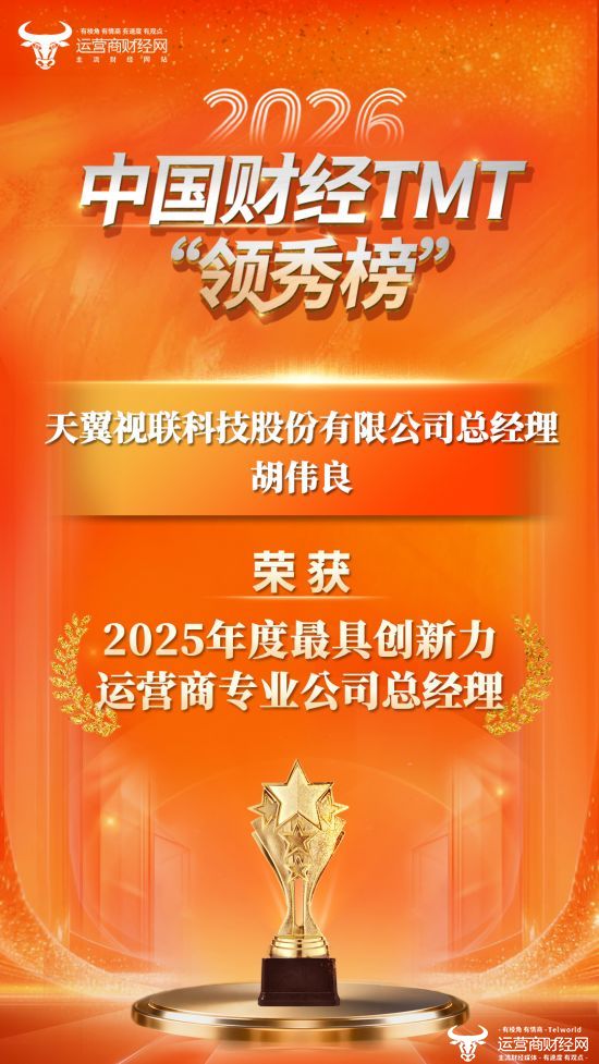 1月29日,备受瞩目的2026中国财经TMT“领秀榜”盛典圆满闭幕,现场,运营商财经网对过去一年中各个领域的年度优秀企业、优秀产品及解决方案、优秀个人进行了颁奖。其中,天翼视联科技股份有限公司(以下简称“天翼视联公司”)斩获五大重磅奖项,全方位彰显了其在视联网领域的领军地位与综合实力。