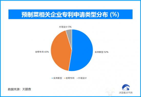 天眼查专业版数据显示,在预制菜方面的相关专利申请共1650件,其中,实用新型专利和发明专利占比最高,分别占比52%和43%。快速、便捷是预制菜最大的特点,而为了维持这一特点,发明专利多围绕计量、解冻、加热、营养检测等多方位,充分证明了该领域的“技术”基因。