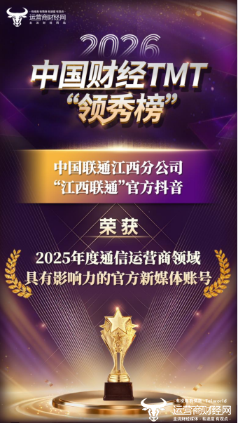 此外,江西联通深耕抖音渠道,以“用户需求”为核心打造情感化、实用化内容,获得了超80万抖音粉丝突破成绩,其官方抖音账号斩获“2025年度通信运营商具有影响力的官方新媒体账号”。
