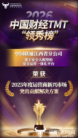由运营商财经网独家主办的 2026 中国财经 TMT 领秀榜盛典圆满落幕。作为运营商财经网年度重磅打造的权威专业评选,中国财经 TMT “领秀榜” 不仅是通信运营商领域最受关注的投票评选活动之一,更是业内唯一的年度综合性评选,凭借参与范围最广、覆盖业务条线与部门最全的特点,成为极具行业含金量的权威奖项。