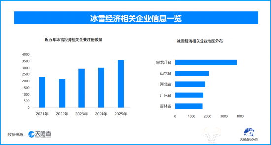 天眼查专业版数据显示,截至目前我国现存在业、存续状态的冰雪经济相关企业超2.6万家。其中,2025年新增注册相关企业超3500余家,从企业注册数量趋势来看,近五年间,除2022年稍有下降外,冰雪经济相关企业的注册数量大体呈现出增长态势,并在2025年达到顶峰。