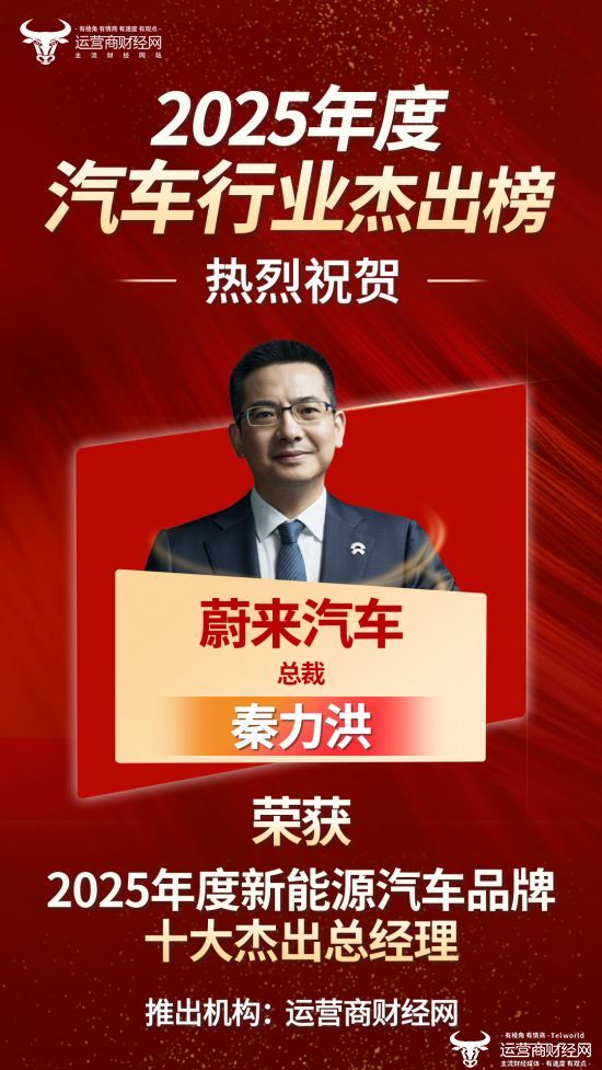 日前,运营商财经网正式发布了“2025年度新能源汽车品牌十大杰出总经理”,其中,蔚来汽车总裁秦力洪成功登上此榜单。
