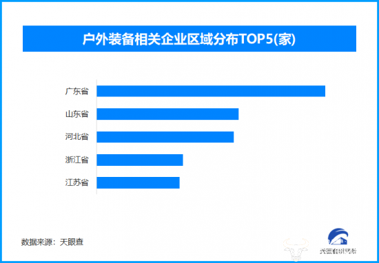 天眼查专业版数据显示,截至目前我国现存在业、存续状态的户外装备相关企业超7.4万家。从区域分布来看,广东省、山东省、河北省户外装备相关企业数量位居前列,分别为超1.3万余家、8300余家和8100余家。排在其后的是浙江省和江苏省。
