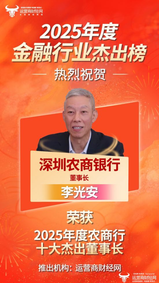 近日,备受瞩目的“2025年度农商行十大杰出董事长”上榜名单正式公布。其中,深圳农商银行董事长李光安凭借优秀的表现,成功入选榜单。