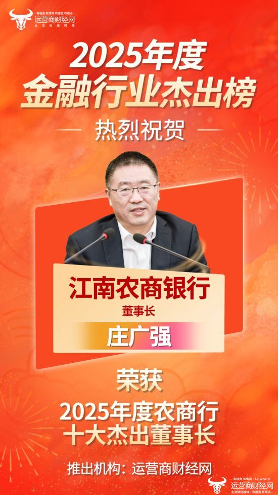 目前,“2025年度农商行十大杰出董事长”已经确定,江南农商银行董事长庄广强入选。