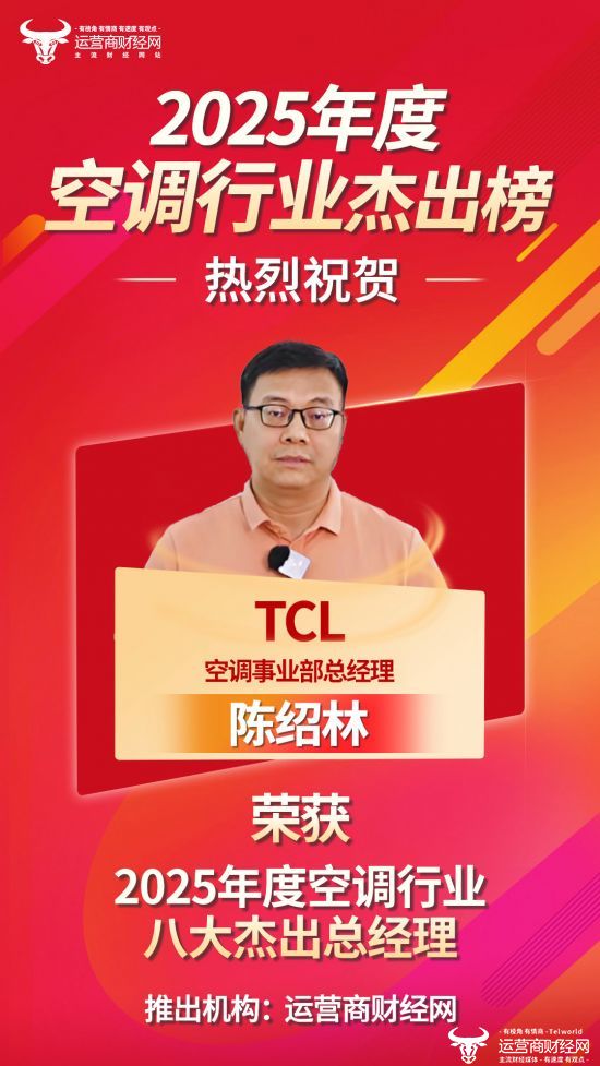 运营商财经网手机家电事业部副主任刘庆表示,从销量成绩不难看出,TCL空调业务在2025年发展势头非常不错,这离不开陈绍林的领航掌舵,他此次上榜实至名归。