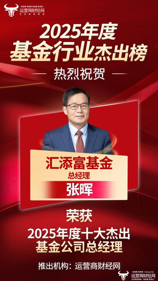 运营商财经网独家打造的“2025年度十大杰出基金公司总经理榜”终于在日前正式出炉!其中,来自汇添富基金的总经理张晖,成功入围该榜!