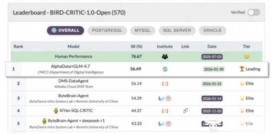 近日,中国移动数据分析类智能体“九天AlphaData”,在全球权威的SQL评测基准BIRD-CRITIC中成绩卓越,跃升榜单第一名,标志着中国移动在复杂数据分析场景下的核心能力达到国际领先水平。