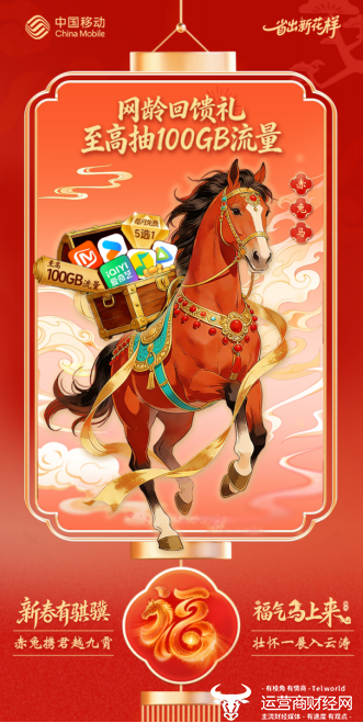 新春宅家追春晚、走亲访友发拜年视频,最怕流量告急?别慌!新春有骐骥,福气马上来!进入中国移动APP搜索“网龄回馈礼”,多重流量、权益好礼已备好,为新年加满福气,帮你轻松告别流量使用焦虑!