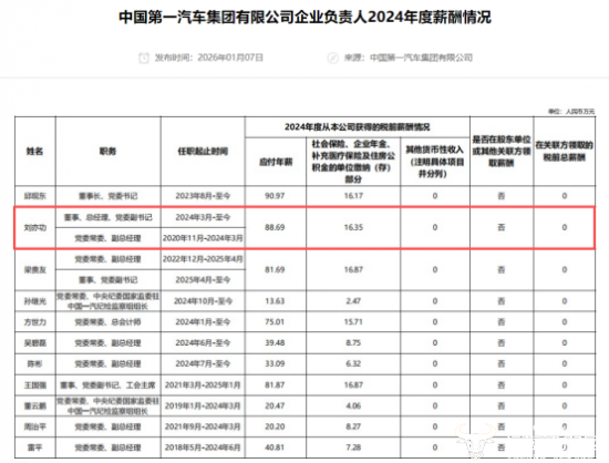 近日,国资委公布了各大央企负责人2024年度的薪酬情况,引发人们密切关注。作为国内规模最大的央企汽车集团,一汽集团总经理刘亦功的薪酬水平如何?