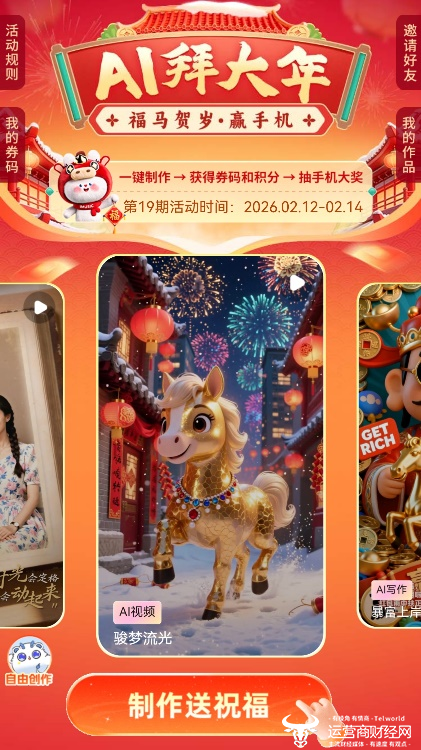 当每个人都能轻松制作属于自己的拜年视频,在创作中分享节日的快乐时,这份全民过年的喜悦,便也是中国电信的喜悦。