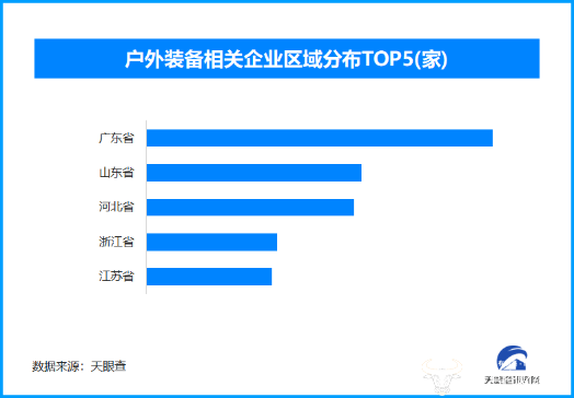天眼查专业版数据显示,截至目前我国现存在业、存续状态的户外装备相关企业超7.4万家。从区域分布来看,广东省、山东省、河北省户外装备相关企业数量位居前列,分别为超1.3万余家、8300余家和8100余家。排在其后的是浙江省和江苏省。