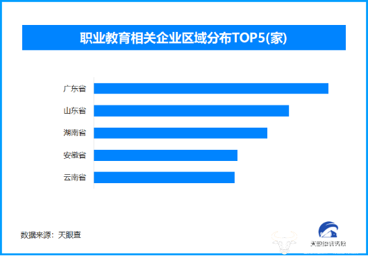 天眼查专业版数据显示,截至目前我国现存在业、存续状态的职业教育相关企业超1万家。从区域分布来看,广东省、山东省、湖南省职业教育相关企业数量位居前列,分别拥有超1100余家、950余家和840余家。