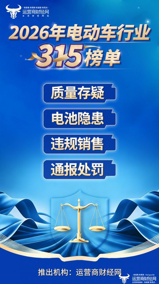针对电动车行业的各项具体问题,运营商财经网将打造2026年315电动车系列榜单,具体包括: