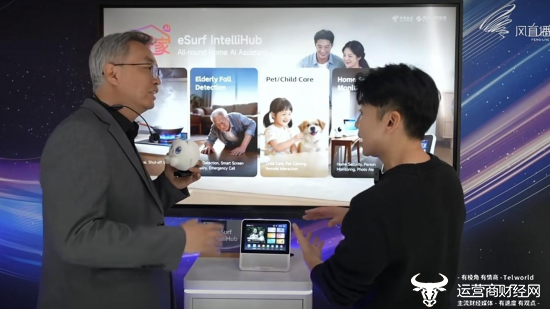 值得一提的是,中国电信展台特别设置了AI科技小剧场,演员采用通俗易懂的语言和生活化的表达方式对五大产品进行展示,其中三款产品来自天翼数字生活公司:天翼智屏看护萌宠,实时播放“猫咪拆家”画面;康养机器人同步家人健康数据,提醒老人用药;机器狗陪跑锻炼,巡逻家中情况……生动的场景化演绎给参会嘉宾留下了深刻印象。