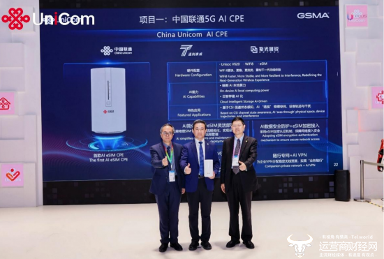 2026年3月3日,巴塞罗那 —— 在世界移动通信大会(MWC 2026)期间,中国联通与全球移动通信系统协会(GSMA)联合发布面向全球的“‘AI+eSIM’云智终端合作联通方案”。随后,中国联通携手产业链伙伴通则康威、紫光展锐,正式启动首个合作项目——云智终端5G AI CPE项目。这标志着“‘AI+eSIM’云智终端合作联通方案”从战略规划进入落地实施阶段,为AI与eSIM技术的融合应用提供了可推广的合作范本。