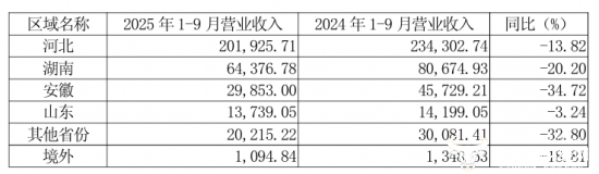 老白干酒作为河北省唯一的白酒上市公司,其业绩最为透明和受关注。2025年三季度,公司实现营业收入33.30亿元,同比下降18.53%,其中,在河北省内收入同比下降13.82%至20.19亿元。可以看出,虽然老白干酒业绩有所下滑,但其在河北市场的分量依然举足轻重。