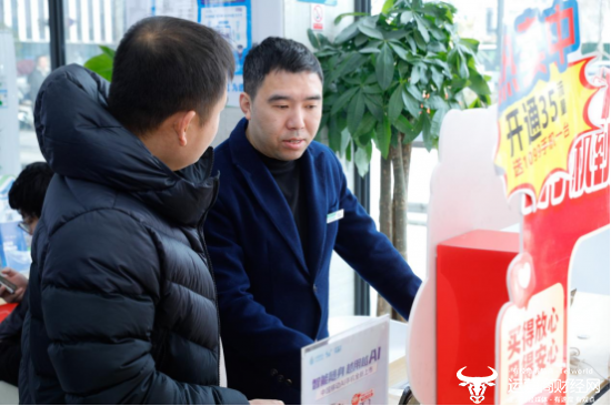 (中国移动工作人员向客户介绍AI手机和“以旧换新”活动)