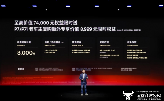 即日起至2026年3月31日24点前下定小鹏P7,用户可享受至高74,000元的配置限时送权益,包括价值8,000元的新春购车补贴,并可二选一享受5,000元选装基金,或3年0息/5-7年低息的金融购车权益;同时,置换用户可获至高10,000元置换权益,复购用户可享至高22,499元复购权益。在外观方面,小鹏提供了至高价值20,000元的装备权益,两款新色套装及轮毂选装的限时半价优惠,主动式升降尾翼限时赠送,购买鹏翼版车型的朋友还可额外获赠副驾零重力座椅。多重礼遇助力用户轻松开启智能出行生活。
