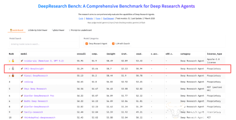 DeepResearch Bench是目前全球评估AI大模型“深度研究”综合能力的权威基准。该测试涵盖了100个博士级别(phd-level)的复杂研究任务,横跨22个不同学科,严格考量AI系统从接收模糊指令到自主检索、分析整理,最终交付专业级研究报告的端到端实战能力,是衡量企业级AI智库实用化水平的“试金石”。