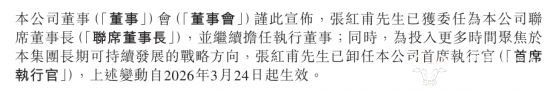 公告显示,蜜雪集团张红甫获任为公司联席董事长,并继续担任执行董事,而为投入更多时间聚焦于本集团长期可持续发展的战略方向,张红甫卸任公司首席执行官一职。卸任后,张红甫将继续参与集团重大决策,并在集团关键领域发挥核心领导作用。
