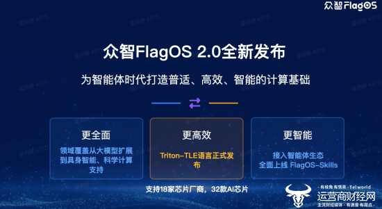 大模型开启了AI时代,而智能体正在重构现实世界。当AI从"生成回答"走向"持续感知、规划、执行任务",对底层计算基础设施提出了全新挑战:没有普适计算,智能体难以跨芯片、跨场景、跨平台运行;没有高效计算,智能体难以进入政府、工业、金融、机器人等关键领域;没有开放计算,AI生态将被单一路径锁定,难以形成真正繁荣的产业体系。众智FlagOS 2.0作为面向多元AI芯片的统一开源系统软件栈重大升级版本,实现八大核心技术突破,成为智能体时代的核心智算基座。