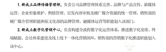公告显示,今世缘将新成立品牌传播管理部与数字化营销中心,将文化部更名为企业文化部,并精简了销售部职能。可以看出,此次调整核心聚焦于数字化转型与品牌专业化运营,通过数字化手段重构其营销链路。