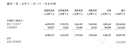 从产品来看,除主营业务液态奶呈双位数下滑外,冰淇淋、奶粉、奶酪等均有不同程度增长。其中,蒙牛液态奶业务实现营收649.39亿元,较2024年730.66亿元同比下滑11.1%,但其在财报中表示,在低温板块,蒙牛已连续21年稳居市场份额第一。
