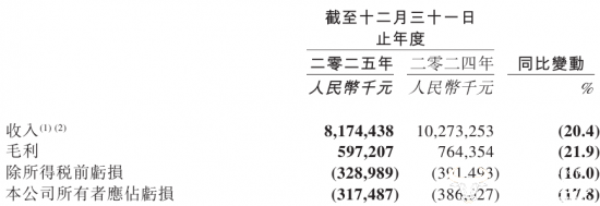 据百果园披露的2025年业绩情况,公司2025年实现营业收入81.74亿元,相较于2024年的102.73亿元,下降了20.4%,一年内减少了超20亿元的收入。同时,公司2025年归母净利润为-3.17亿元,尽管较2024年3.86亿元的亏损额收窄了17.8%,但依旧亏损。