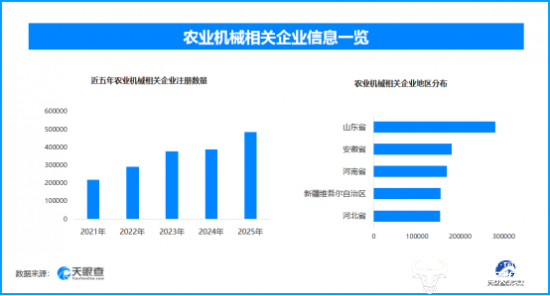 天眼查专业版数据显示,截至目前我国现存在业、存续状态的农业机械相关企业超286万家。其中,2026年截至目前新增注册相关企业约12.1万余家,从企业注册数量趋势来看,近五年间,农业机械相关企业的注册数量呈现出逐年增长的态势,并在2025年达到顶峰。