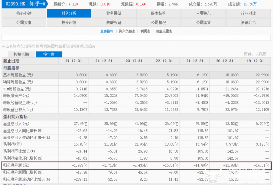 据东方财富网统计数据显示,知乎自2019年至今的归母净利润一直为负,这七年公司归母净亏损金额分别为14.31亿元、11.98亿元、14.69亿元、15.81亿元、8.44亿元、1.72亿元、1.93亿元,累计亏损金额高达68.87亿元。