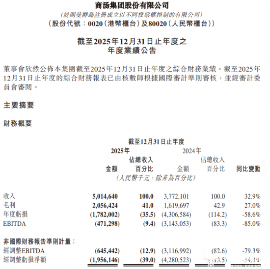 具体来看,商汤科技在2025年累计收入约为50.15亿元,同比增长32.9%,是近三年最快;年度亏损约为17.82亿元,与上年同期亏损43.07亿元相比,缩减58.6%。