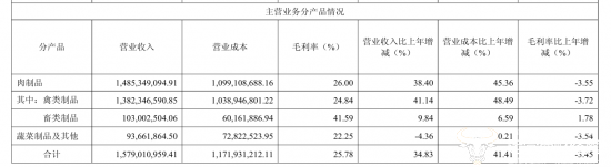 从产品来看,公司核心业务禽类制品实现收入13.82亿元,相较于2024年的10.39亿元,增长了41.14%,但毛利率却同比下降3.72个百分点至24.84%。此外,畜类制品收入同比增长9.84%至1.03亿元。由此可见,有友食品对单品的依赖程度较高。
