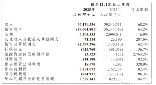同时,公司2025年毛利率由2024年的7.6%提升至9.8%,虽在零售行业中处于较低的水平,但其毛利达到了65.06亿元,同比增幅高达116.9%,远超营收增速,规模效应正在发挥作用。