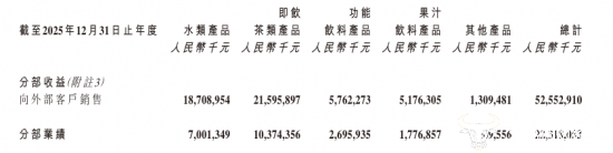 此外值得注意的是,对于农夫山泉来说,饮用水板块其实已退居为公司第二大业务,而曾经的“第二增长曲线”茶饮料板块已成长为公司最大业务,去年实现营收215.96亿元,营收占比为41%。相较之下,华润饮料的饮料产品收入虽同比增长7.3%至14.98亿元,但仅占总收入的13.6%,尚未形成有效支撑。