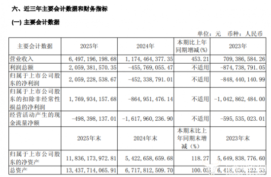 根据公司发布的年报,去年营业收入约为64.97亿元,同比增幅高达453.21%,翻了四倍多;归母净利润达到20.59亿元,与上一年亏损4.5亿元形成鲜明对比,且这是其上市以来首次实现年度盈利。