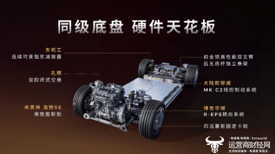 零跑D19底盘架构100%自研,搭载前双叉臂、后五连杆独立悬架,经中欧联合专业团队精细化调校,兼顾操控精准与乘坐舒适。纯电版三电机四驱,最大功率540kW、峰值扭矩745N·m,零百加速3秒级,双矢量电驱可实现毫秒级扭矩分配,过弯更稳、加速更强。同时,新车还配备孔辉双腔闭式空气悬架、东机工连续可变阻尼减振器,搭配博世华域R-EPS转向、欧摩威(原大陆)MKC2线控制动、四活塞前固定卡钳和米其林高性能轮胎,硬件规格媲美百万级豪车。