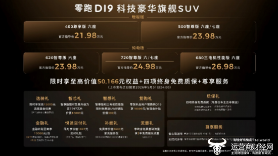 新车提供纯电、增程两种动力,以及六座、七座多种版本选择,满足多元化的用户需求。即日起至2026年5月31日24:00,下定用户可享选装礼、智芯礼、智感礼、复购礼、金融礼、悦途交付礼、补能礼、流量礼、质保礼、尊享服务(省心取用车、无忧代步车)等多重豪礼,限时权益价值至高达50166元。
